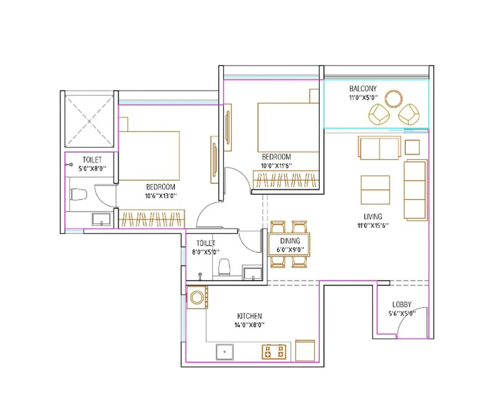 | 2 BHK | 900 Sq.Ft | ₹ 80 Lacs Onwards | |