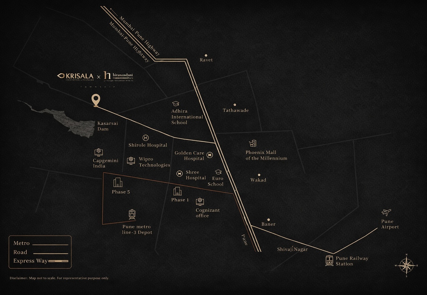 Hiranandani Krisala Township Phase 3 is a landmark 105-acre integrated development in North Hinjawadi, Pune, thoughtfully created by Hiranandani Communities and Krisala Developers. Designed as a self-sustained urban destination, Hiranandani Krisala Township blends premium residences, retail, education, healthcare, and a 40-acre hospitality zone, highlighted by an exclusive 8-acre racetrack and polo club. With over 70% green spaces, eco-friendly infrastructure, luxury amenities, and excellent connectivity, it offers a refined lifestyle where modern comfort meets sustainable living.